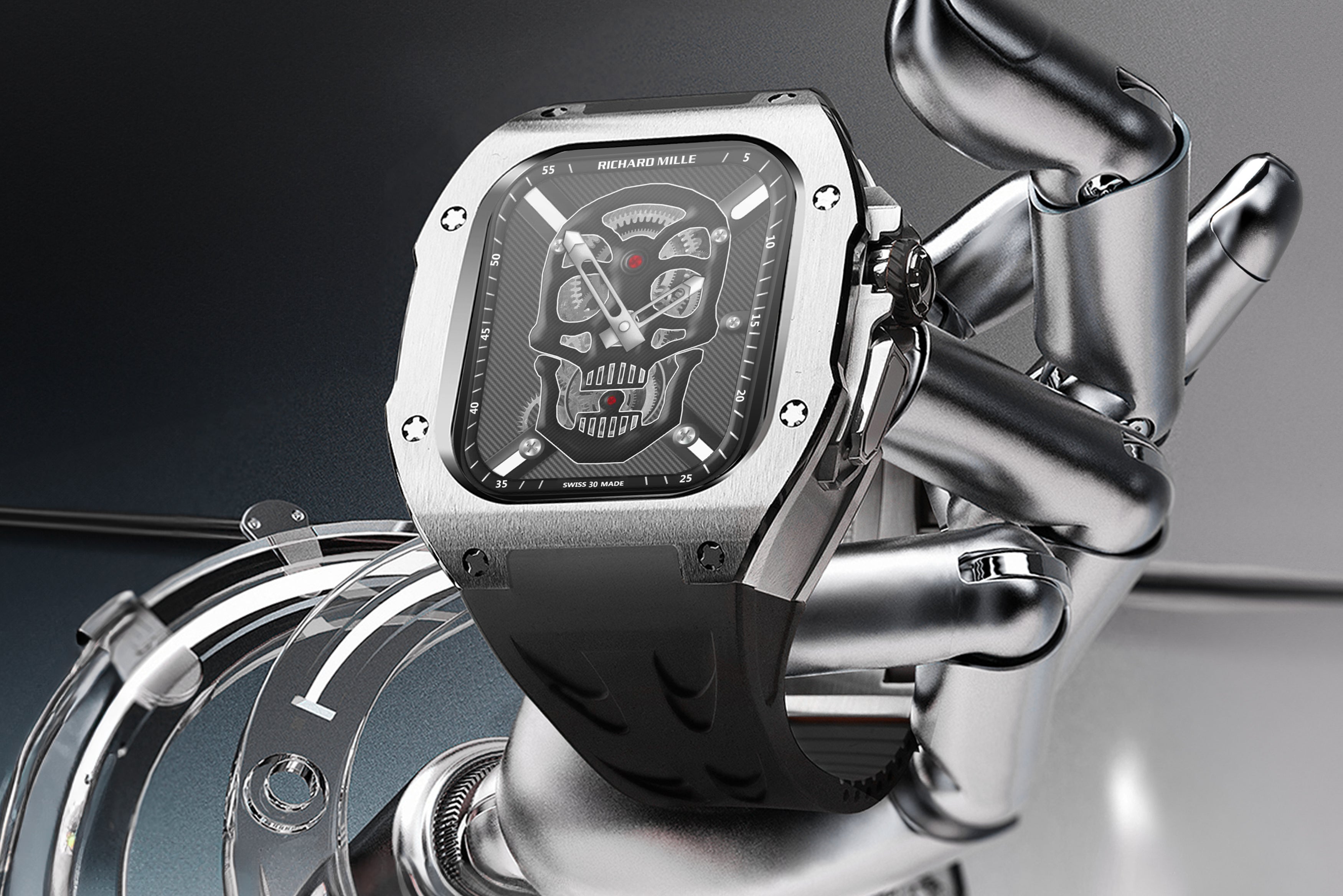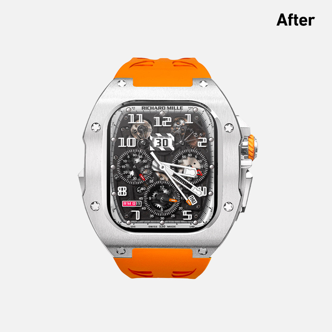 The APOLLO Mod Case offers a sleek, professional look of a mechanical watch, perfect for the Smooth Operator. Crafted with Aerospace-Grade Titanium and ultra-light Fluoro rubber silicone, it ensures exceptional comfort and style for your Apple Watch.