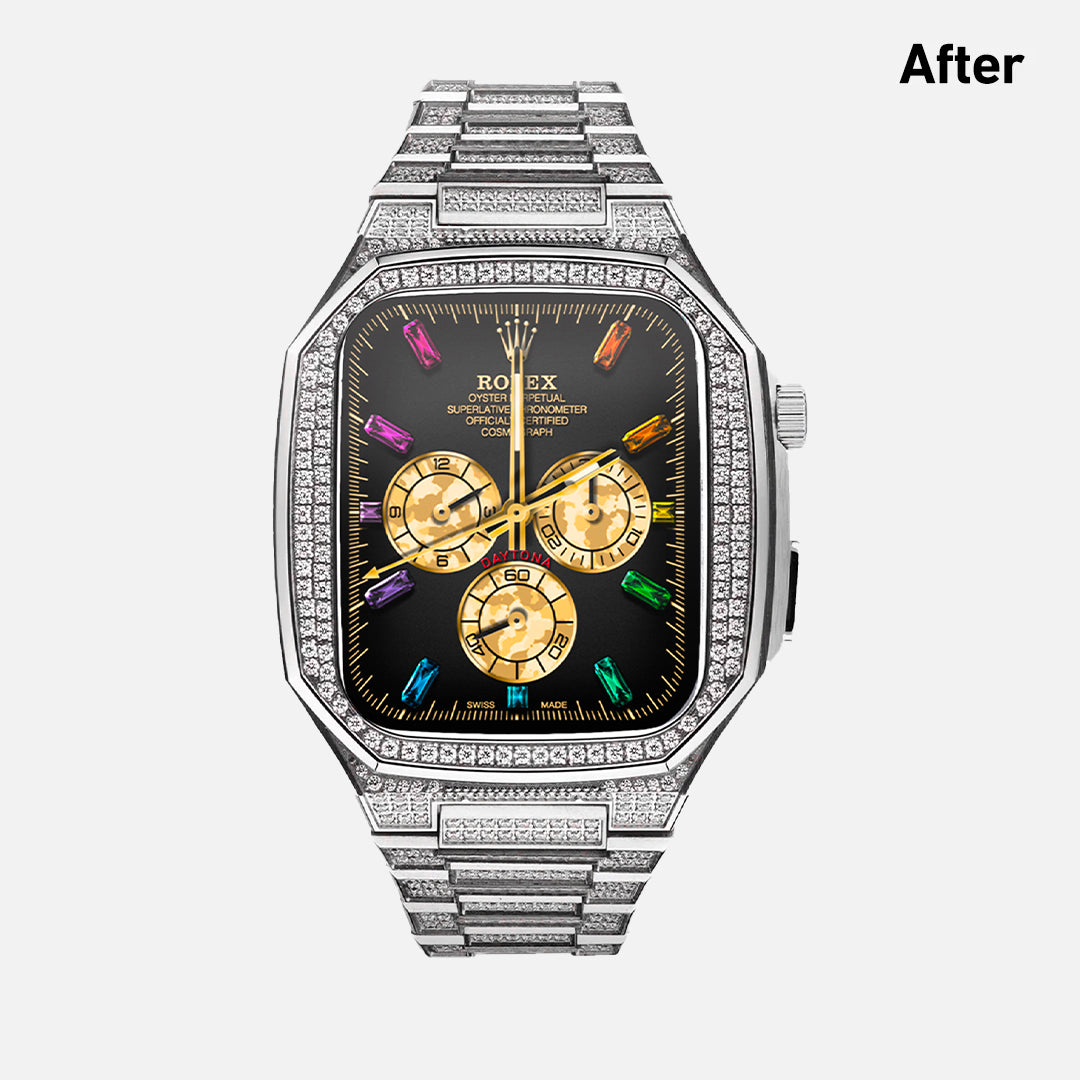 Our exclusive Bustdown Apple Watch case, crafted through a meticulous and costly process, is limited to just 50 pieces worldwide, ensuring unparalleled rarity and prestige for discerning collectors.
