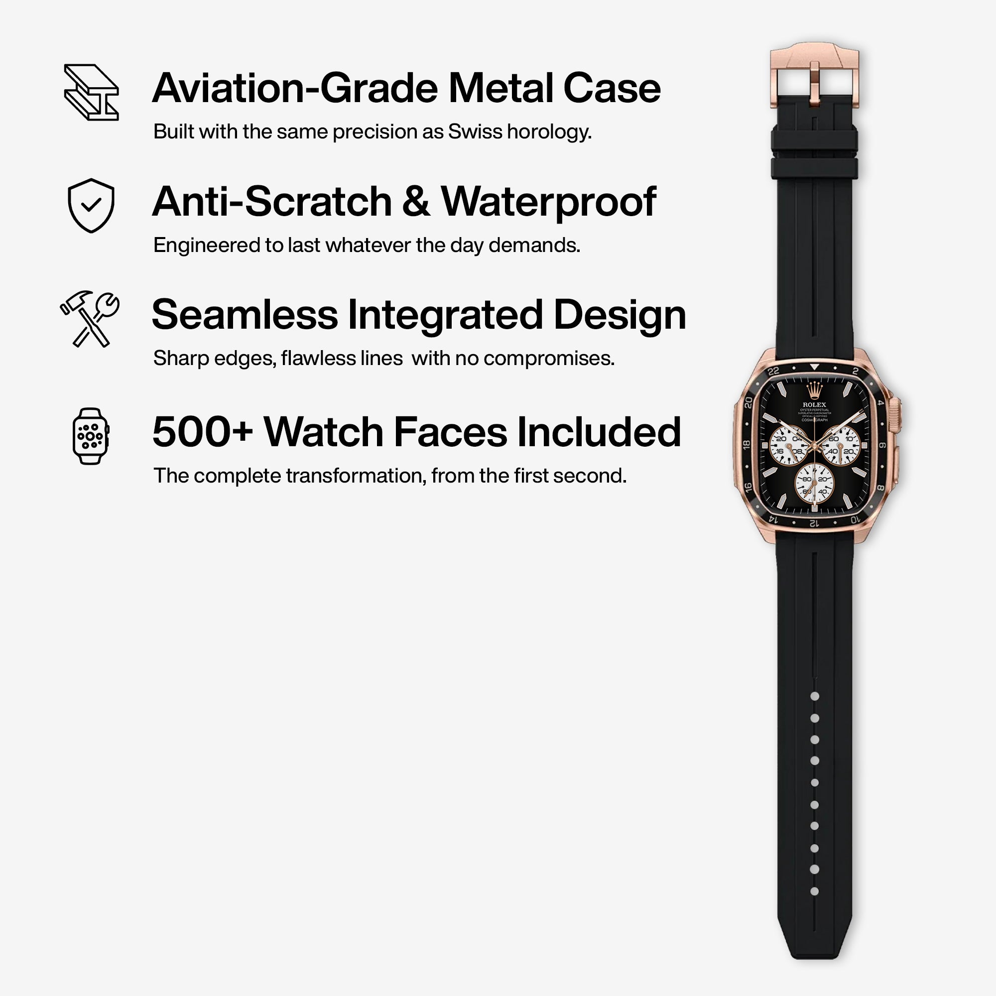 When you buy one of our Cases or Straps, you'll get a guide. It will show you, step by step, how to install our custom Watch Faces on your Apple Watch in under 2 minutes. Designers create these faces to fit any occasion and a variety of styles. The guide ensures a smooth setup, so you can enjoy a tailored look without frustration.