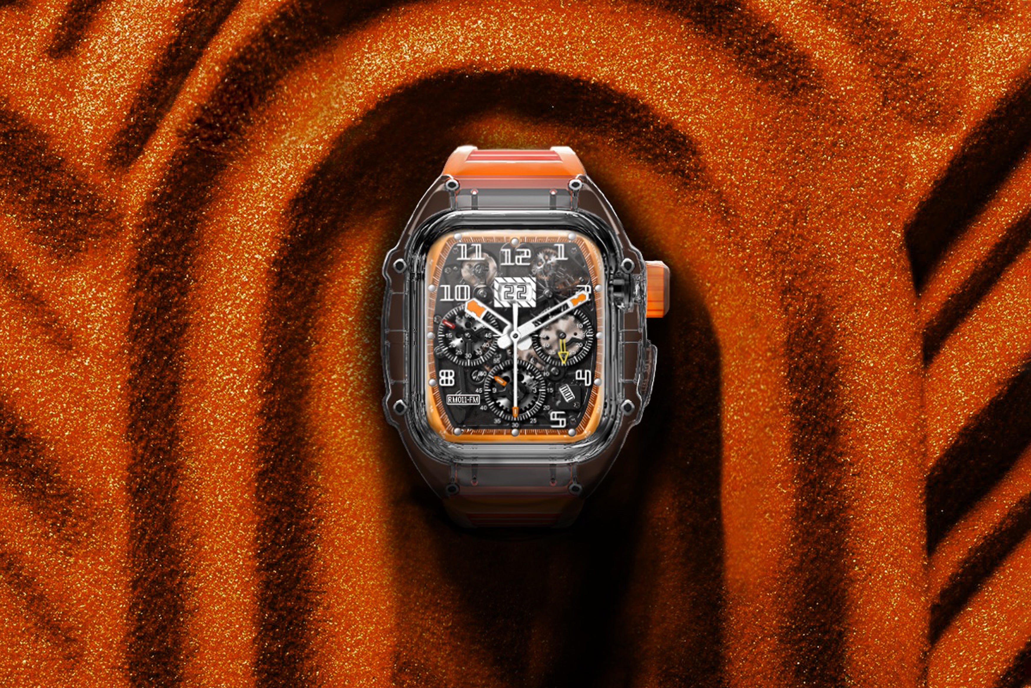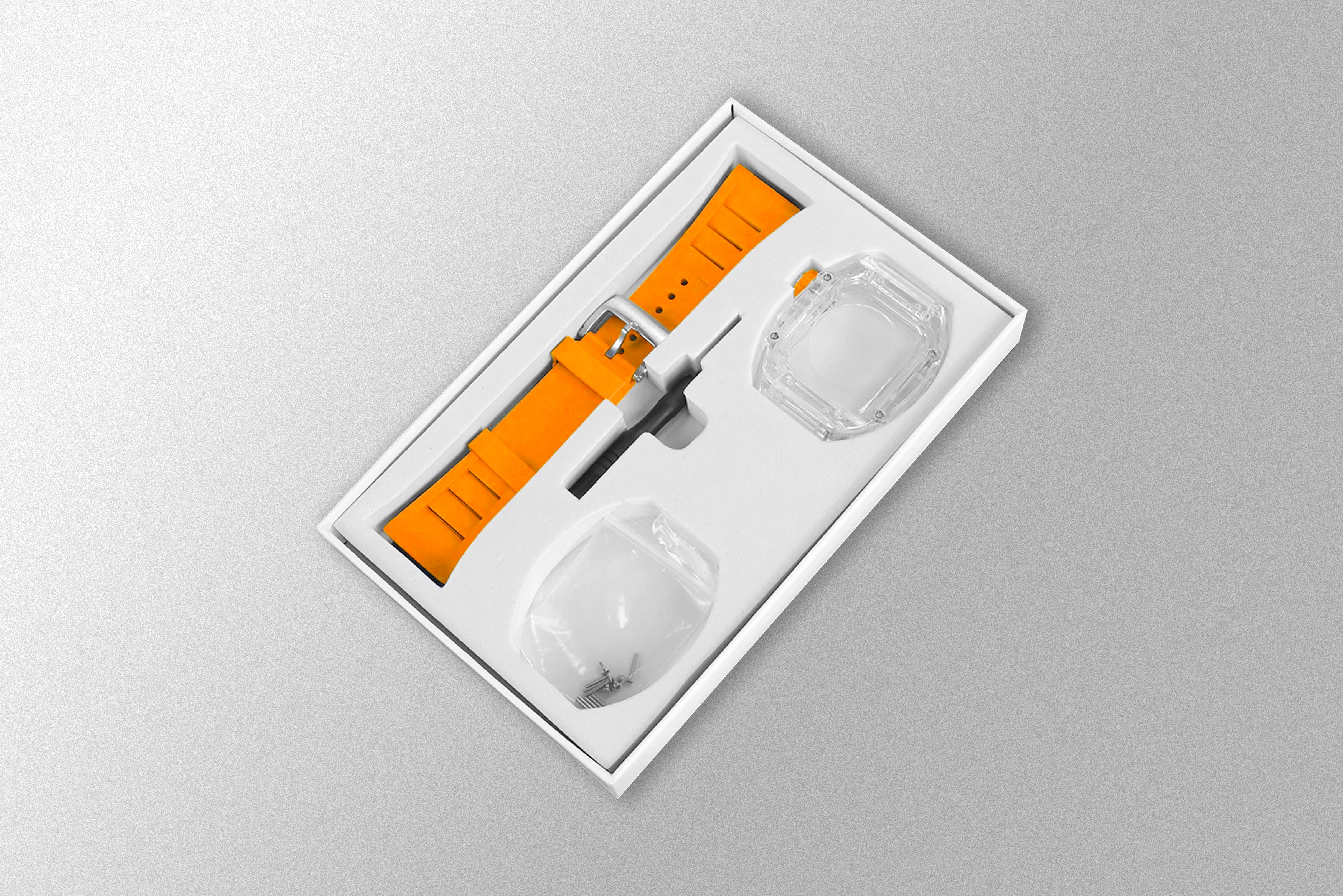 Lightweight, sporty, and designed to stand out, the SAPPHIRE Case brings a fresh twist to make your Apple Watch shine. Crafted from ultra-light Fluoro rubber silicone and crystal-clear polycarbonate, it combines comfort with a bold, standout design.