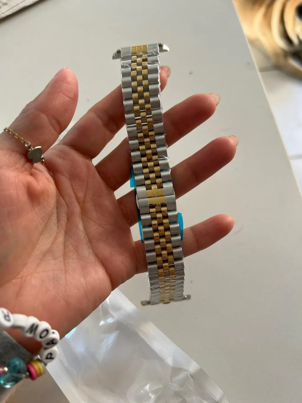 The Jubilee Two Tone Strap offers unmatched versatility, perfect for any occasion, work, dates, outdoor events, or the gym. Crafted from durable stainless steel alloy with an elegant two-tone design, it features spring-loaded links for superior comfort and flexibility.
